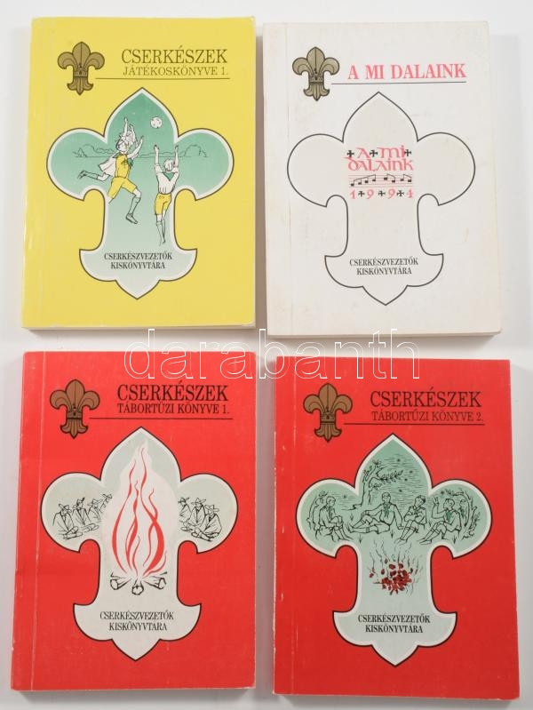 Leírás: 4 darab cserkész témájú könyv: Cserkészek Játékoskönyve 1., A mi dalaink, Cserkészek tábortűzi könyve 1-2.