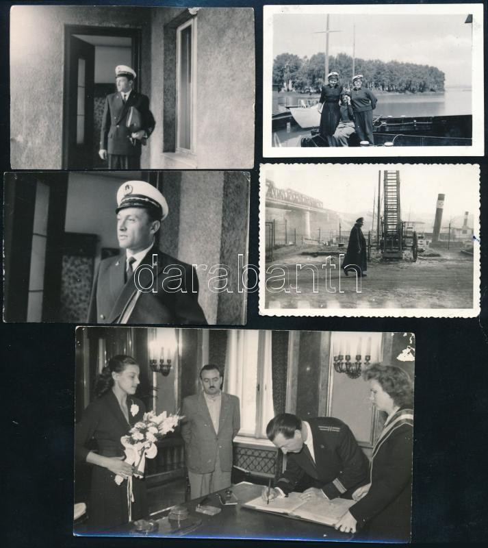Leírás: Hajósokat ábrázoló vegyes fotók (MAHART, Dunai Flottilla, stb.), összesen 11 db, 14x8,5 cm és 8,5x5,5 cm között