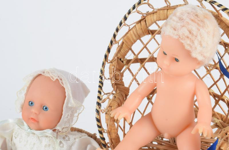 Leírás: 2 db játék baba, egyik jelzett kb 16 cm