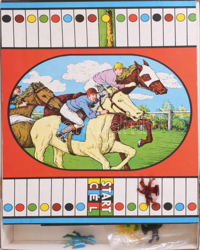 Lóverseny társasjáték, dobozában. https://www.darabanth.com/hu/515-Filatelia-kepeslap-numizmatika-mutargy-konyv-papirregiseg-ekszer-aukcio/518.0/Mutargy-papirregiseg-egyeb/Jatekok~1082/Loverseny-tarsasjatek-dobozaban~II3469816