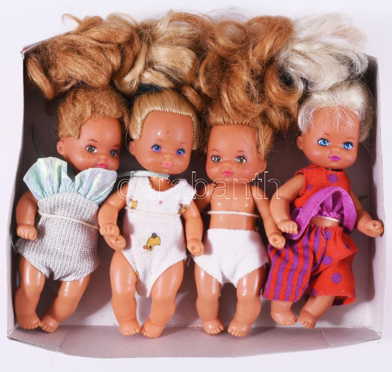 ca 1970 4 db Mattel baba, jelzettek. kb 13 cm https://www.darabanth.com/hu/515-Filatelia-kepeslap-numizmatika-mutargy-konyv-papirregiseg-ekszer-aukcio/518.0/Mutargy-papirregiseg-egyeb/Jatekok~1082/ca-1970-4-db-Mattel-baba-jelzettek-kb-13-cm~II3483826