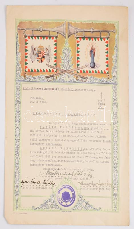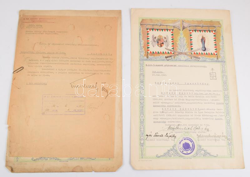1939 Csapattestparancsnoki dicséret és származási igazolvány 2 db dísz... https://www.darabanth.com/hu/515-Filatelia-kepeslap-numizmatika-mutargy-konyv-papirregiseg-ekszer-aukcio/518.0/Mutargy-papirregiseg-egyeb/Militaria~1067/1939-Csapattestparancsnoki-dicseret-es-szarmazasi-igazolvany-2-db-diszes-oklevel~II3491842