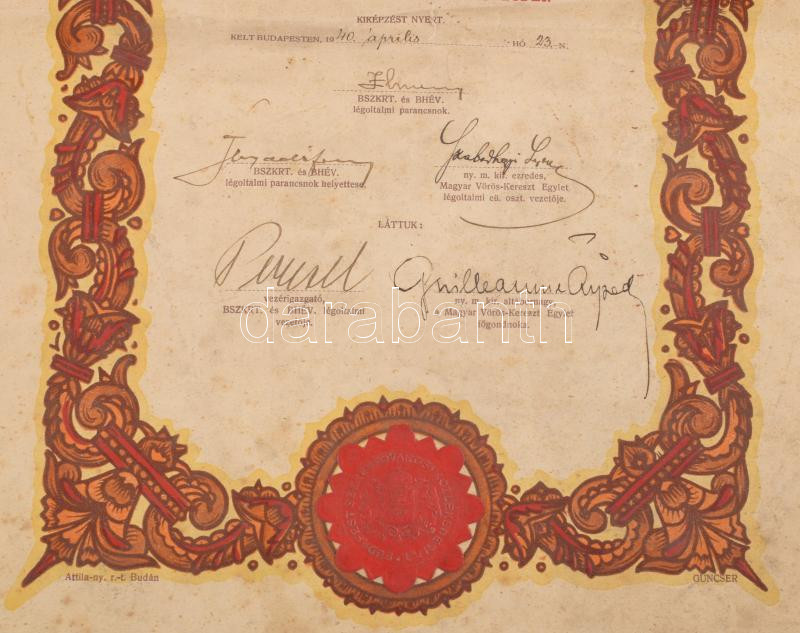 Leírás: 1940 Légoltalmi munkaszolgálat egészségügyi igazolvány Vöröskereszt oklevél sérült 24x41 cm
