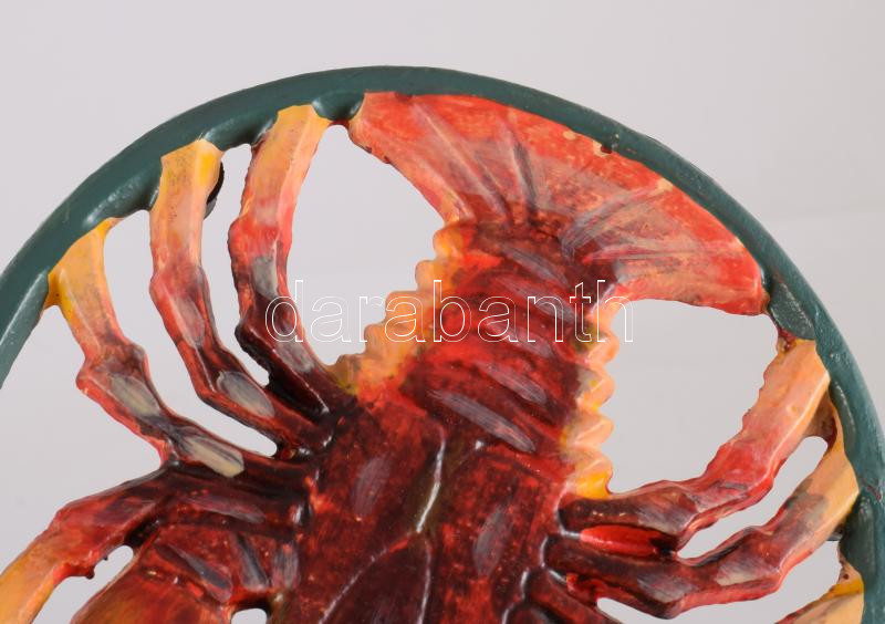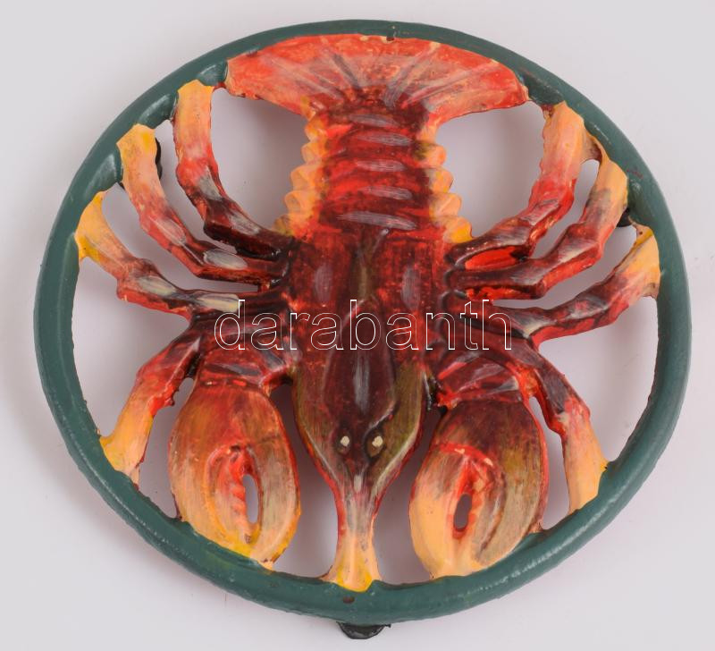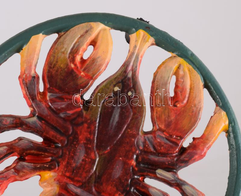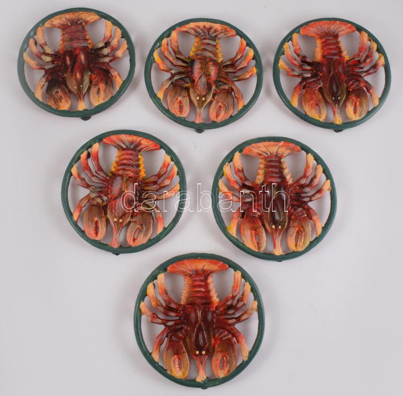 Leírás: 6 darab rákmintás festett öntöttvas edényalátét, 3 lábon állnak, d: 14,5 cm