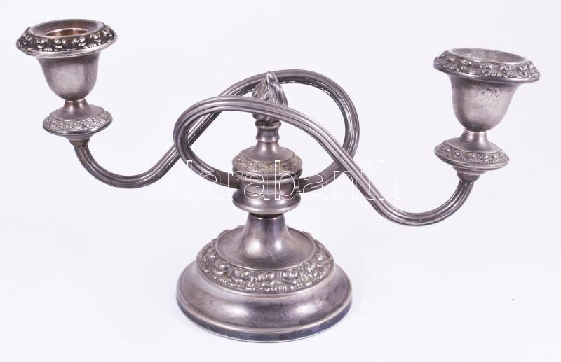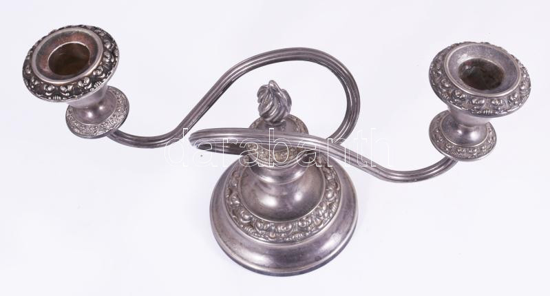 Leírás: Jelzett angol ezüstözött kétágú gyertyatartó, 27x14 cm