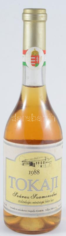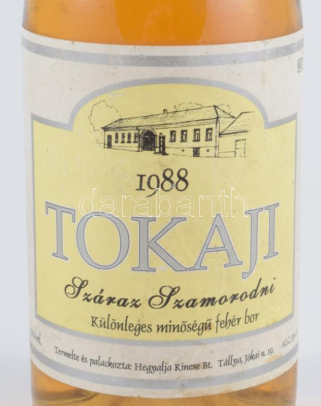 1988 Tokaji szamorodni száraz fehérbor bontatlan palack, 0,5l, Hegyalj... https://www.darabanth.com/hu/515-Filatelia-kepeslap-numizmatika-mutargy-konyv-papirregiseg-ekszer-aukcio/518.0/Mutargy-papirregiseg-egyeb/Muzealis-borok-italok~1085/1988-Tokaji-szamorodni-szaraz-feherbor-bontatlan-palack-0-5l-Hegyalja-Kincse-Tallya~II3485570