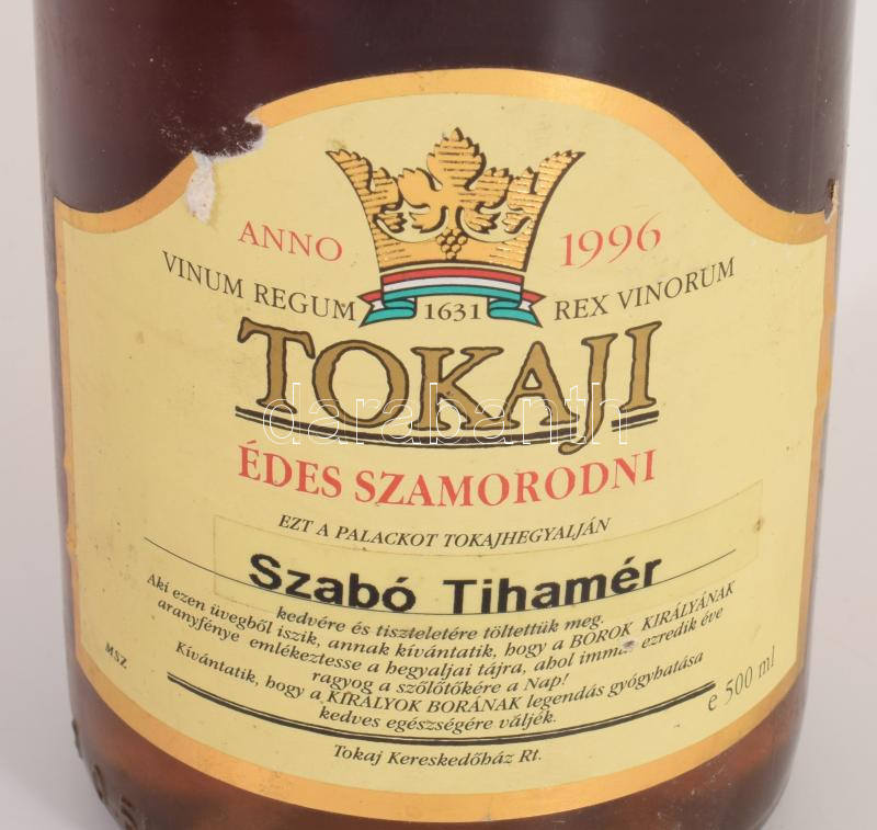 2000 Tokaji Édes Szamorodni, Tokaj Kereskedőház, 0,5l, bontatlan. https://www.darabanth.com/hu/515-Filatelia-kepeslap-numizmatika-mutargy-konyv-papirregiseg-ekszer-aukcio/518.0/Mutargy-papirregiseg-egyeb/Muzealis-borok-italok~1085/2000-Tokaji-Edes-Szamorodni-Tokaj-Kereskedohaz-0-5l-bontatlan~II3488119