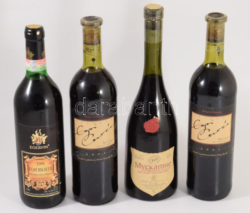 Leírás: 4 üveg bor, 1999 Egri bikavér, Ostoros Egri Cuvée, stb., bontatlan.