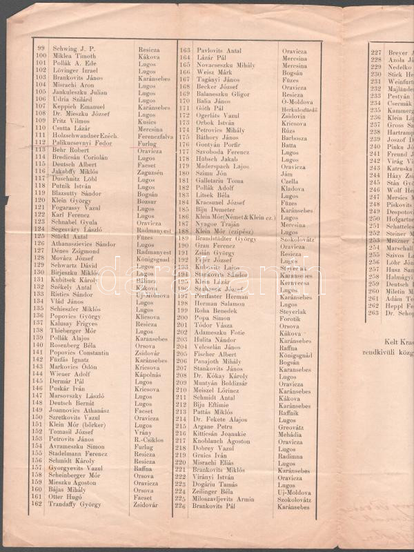 1881 Krassó-Szörénymegye legtöbb adótfizető bizottsági tagjainak névrr... https://www.darabanth.com/hu/515-Filatelia-kepeslap-numizmatika-mutargy-konyv-papirregiseg-ekszer-aukcio/518.0/Mutargy-papirregiseg-egyeb/Nyomtatvanyok~1071/1881-Krasso-Szorenymegye-legtobb-adotfizeto-bizottsagi-tagjainak-nevrrosa-Virilisek-4-p~II3486586
