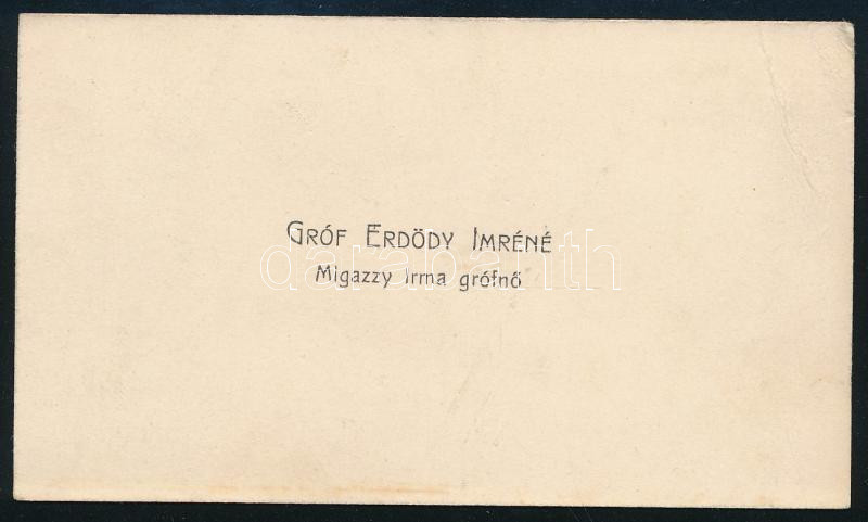 Leírás: cca 1890 Gróf Erdődy Imréné Migazzy Irma névjegykártyája