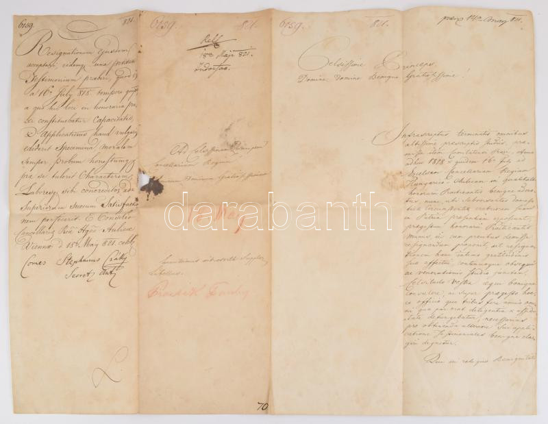 1818 Piacsek Pál udvari gyakornok lemondó levele tiszteletbeli gyakorn... https://www.darabanth.com/hu/515-Filatelia-kepeslap-numizmatika-mutargy-konyv-papirregiseg-ekszer-aukcio/518.0/Mutargy-papirregiseg-egyeb/Okmanyok~1057/1818-Piacsek-Pal-udvari-gyakornok-lemondo-levele-tiszteletbeli-gyakornok-poziciojarol-grof-CsC3~II3486227