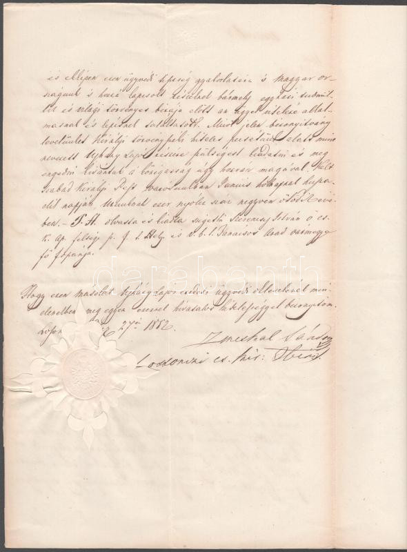 1852 Losonc, Ujházy Lajos ügyvédi oklevelének hiteles másolata, két be... https://www.darabanth.com/hu/515-Filatelia-kepeslap-numizmatika-mutargy-konyv-papirregiseg-ekszer-aukcio/518.0/Mutargy-papirregiseg-egyeb/Okmanyok~1057/1852-Losonc-Ujhazy-Lajos-ugyvedi-oklevelenek-hiteles-masolata-ket-beirt-oldal-Zmeskal-San~II3488963