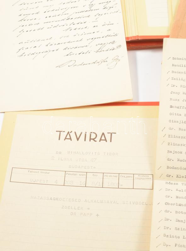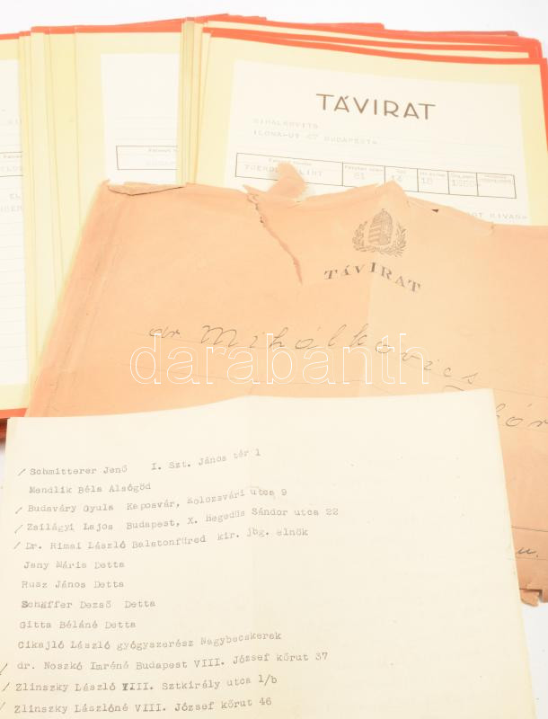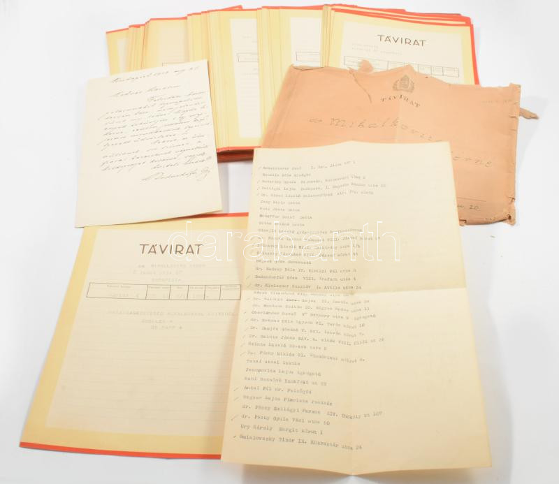 1942 Dr. Mihálkovics Tibor orvos esküvője alkalmából küldött gratuláló... https://www.darabanth.com/hu/515-Filatelia-kepeslap-numizmatika-mutargy-konyv-papirregiseg-ekszer-aukcio/518.0/Mutargy-papirregiseg-egyeb/Okmanyok~1057/1942-Dr-Mihalkovics-Tibor-orvos-eskuvoje-alkalmabol-kuldott-gratulalo-taviratok-kb-60-db~II3492775