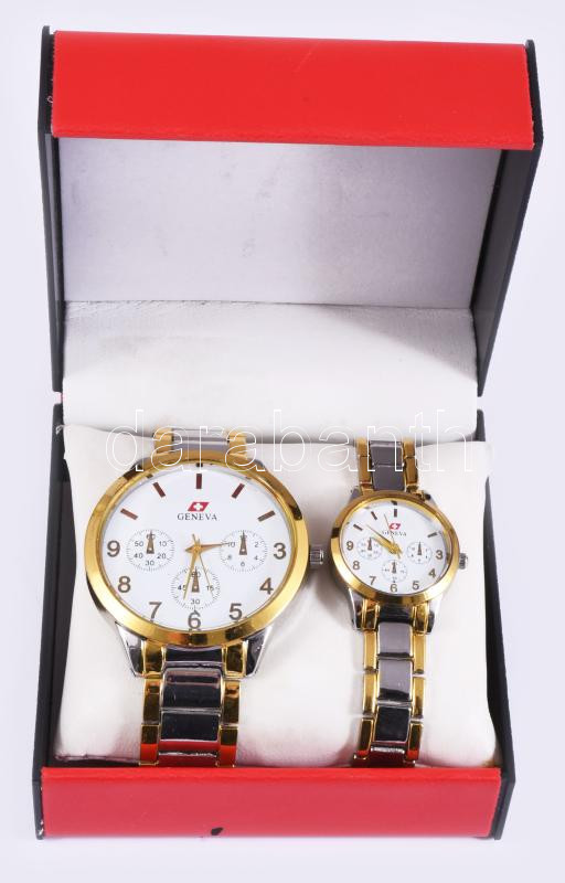 Geneva férfi és női óra pár, díszdobozban https://www.darabanth.com/hu/515-Filatelia-kepeslap-numizmatika-mutargy-konyv-papirregiseg-ekszer-aukcio/518.0/Mutargy-papirregiseg-egyeb/Orak~1078/Geneva-ferfi-es-noi-ora-par-diszdobozban~II3467374