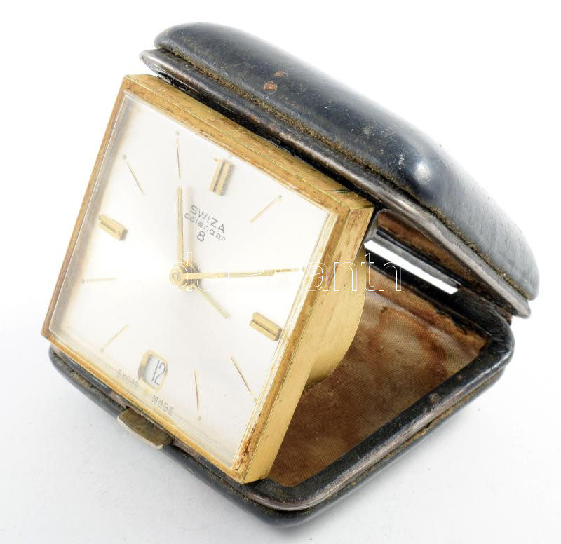 Swiza Calendar 8 utazóóra, sérült tokban. https://www.darabanth.com/hu/515-Filatelia-kepeslap-numizmatika-mutargy-konyv-papirregiseg-ekszer-aukcio/518.0/Mutargy-papirregiseg-egyeb/Orak~1078/Swiza-Calendar-8-utazoora-serult-tokban~II3472502