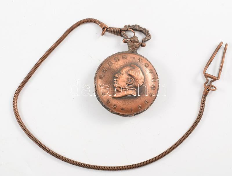 Zsebóra, tokján Mao Ce-tung arcképével, d: 5 cm https://www.darabanth.com/hu/515-Filatelia-kepeslap-numizmatika-mutargy-konyv-papirregiseg-ekszer-aukcio/518.0/Mutargy-papirregiseg-egyeb/Orak~1078/Zsebora-tokjan-Mao-Ce-tung-arckepevel-d-5-cm~II3490839