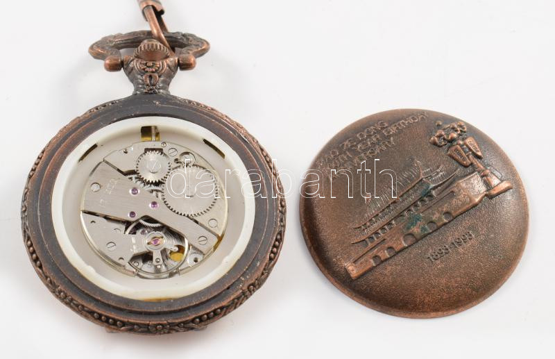 Leírás: Zsebóra, tokján Mao Ce-tung arcképével, d: 5 cm