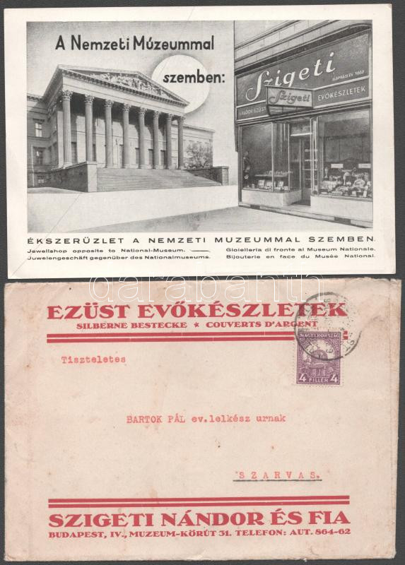 1930 Szigeti Nándor és Fia ezüst evőkészletek fejléces boríték + 2 db ... https://www.darabanth.com/hu/515-Filatelia-kepeslap-numizmatika-mutargy-konyv-papirregiseg-ekszer-aukcio/518.0/Mutargy-papirregiseg-egyeb/Reklam~1062/1930-Szigeti-Nandor-es-Fia-ezust-evokeszletek-fejleces-boritek-plus-2-db-reklamlap~II3491847