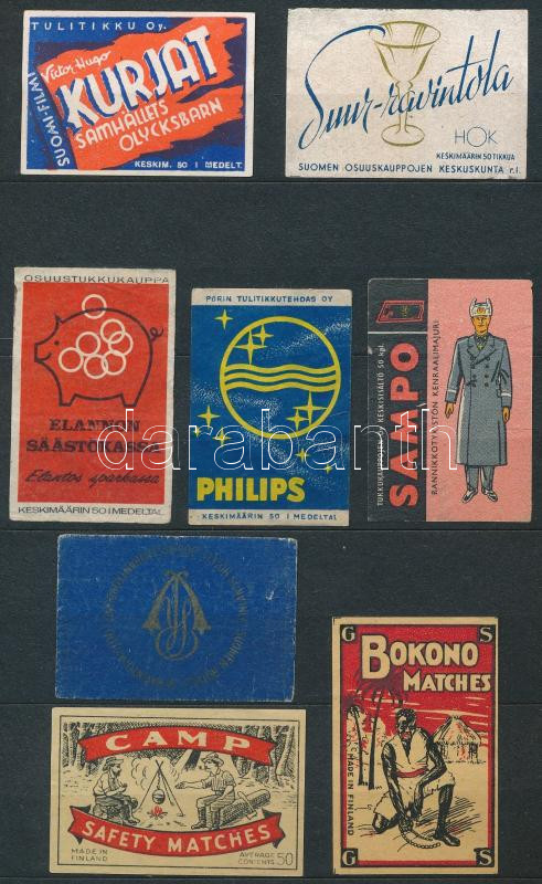 82 db finn gyufacímke, berakóban https://www.darabanth.com/hu/515-Filatelia-kepeslap-numizmatika-mutargy-konyv-papirregiseg-ekszer-aukcio/518.0/Mutargy-papirregiseg-egyeb/Reklam~1062/82-db-finn-gyufacimke-berakoban~II3489103