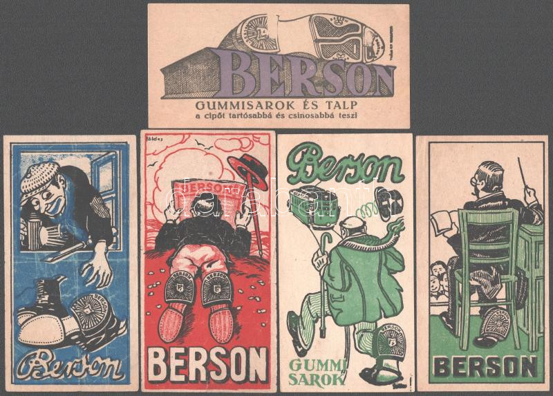 Berson cipősarok számolócédulák, 5 db különféle https://www.darabanth.com/hu/515-Filatelia-kepeslap-numizmatika-mutargy-konyv-papirregiseg-ekszer-aukcio/518.0/Mutargy-papirregiseg-egyeb/Reklam~1062/Berson-ciposarok-szamolocedulak-5-db-kulonfele~II3489036