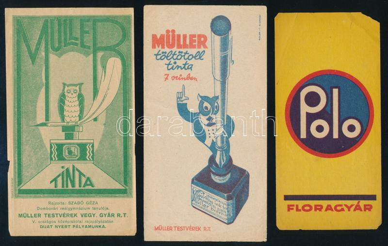 Müller tinta, Floragyár 3 db számolócédula https://www.darabanth.com/hu/515-Filatelia-kepeslap-numizmatika-mutargy-konyv-papirregiseg-ekszer-aukcio/518.0/Mutargy-papirregiseg-egyeb/Reklam~1062/Muller-tinta-Floragyar-3-db-szamolocedula~II3487972