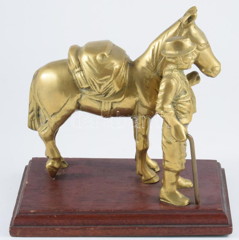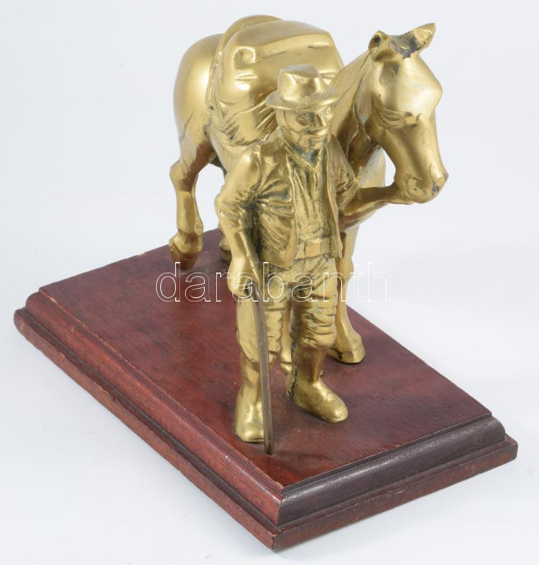 Aranyásó a lovával. Réz szobor, fa talapzaton j.n. 20x20 cm