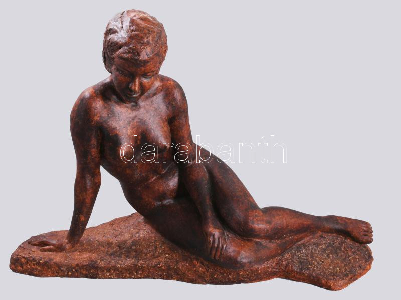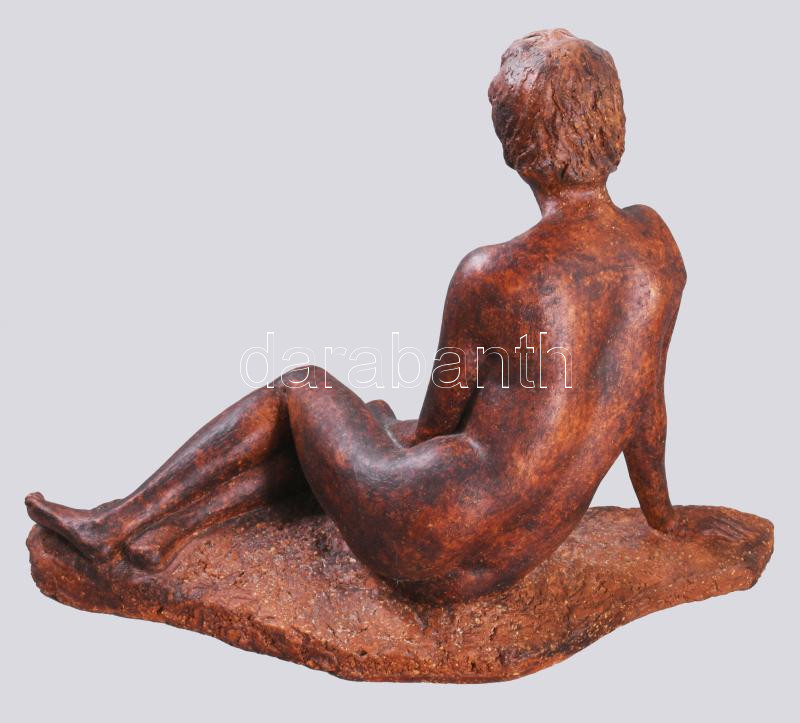 Olvashatatlan jelzéssel, erdélyi szobrász: Ülő akt. Égetett samottos kerámia, 33x24 cm