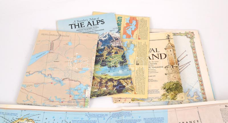 Leírás: 6 db National Geographic térkép: Spanyolország és Portugália, az Alpok, a középkori Anglia, stb., vegyes méretben