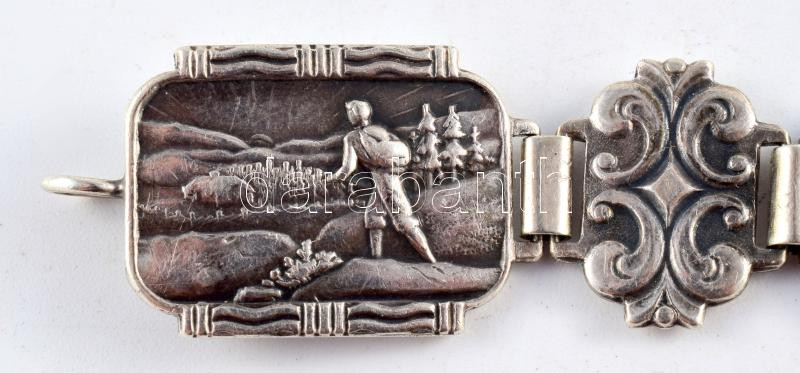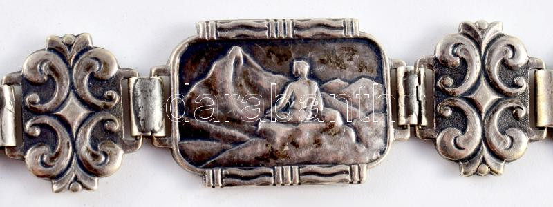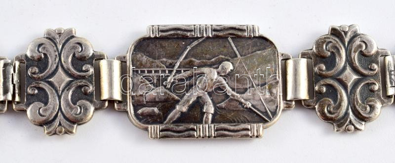 David Andersen Company, Willy Winnaess designer: Ezüst (Ag) sport karkötÅ‘, elemein különbözÅ‘ sportok ábrázolásával. cca 1950, 830-as ezüst, egyik kapcsa javÃtott, jelzett, h: 19 cm, nettó 29,7g