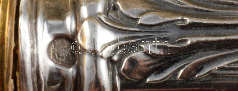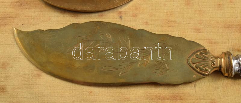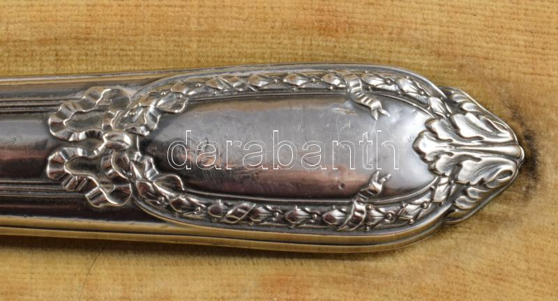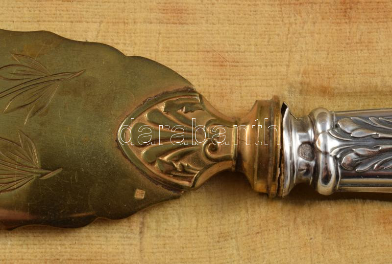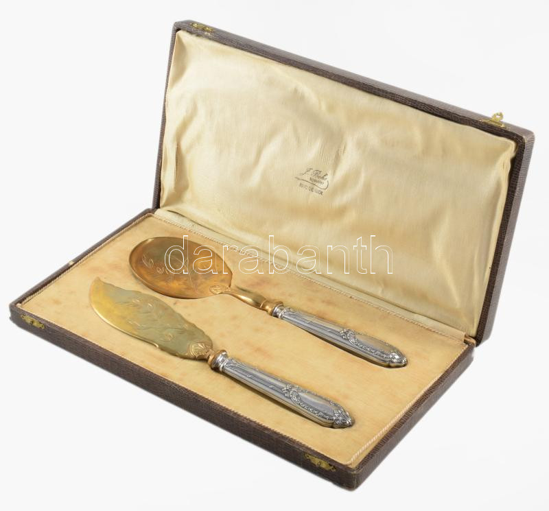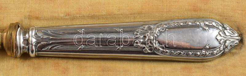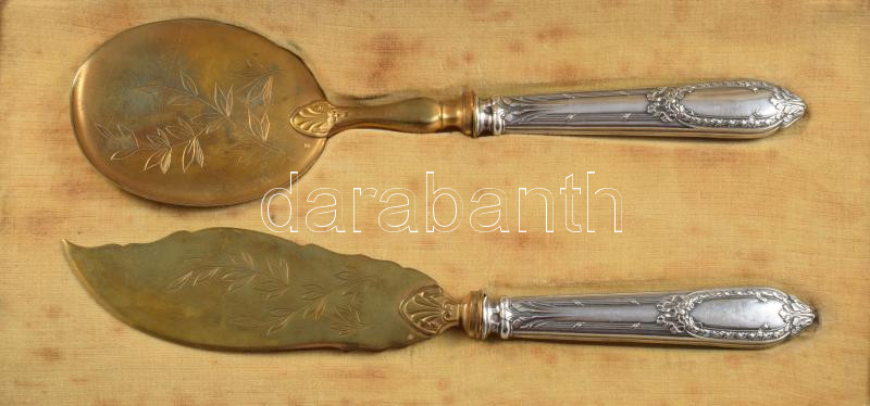 Ezüst (Ag) nyelű fagylaltszervírozó szett, jelzett, dobozában, h: 25,5 cm