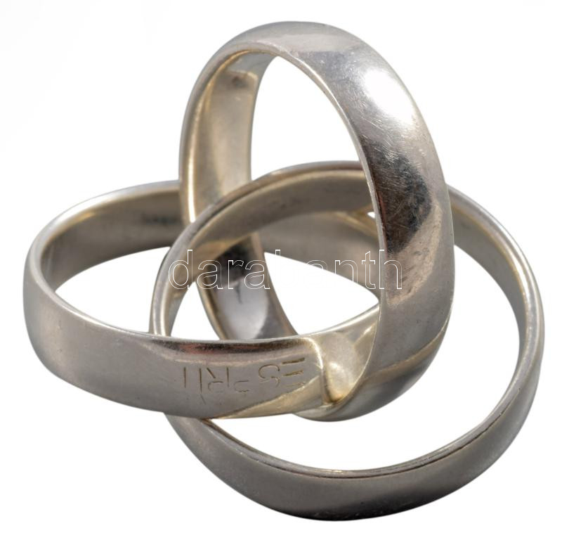 Ezüst (Ag) trinity gyűrű, jelzett, méret: 56, nettó: 10,9 g