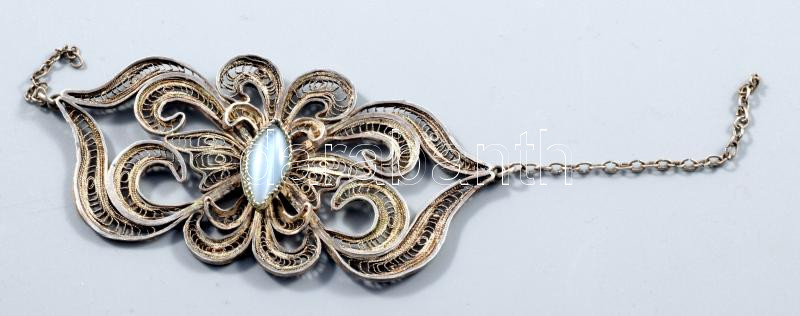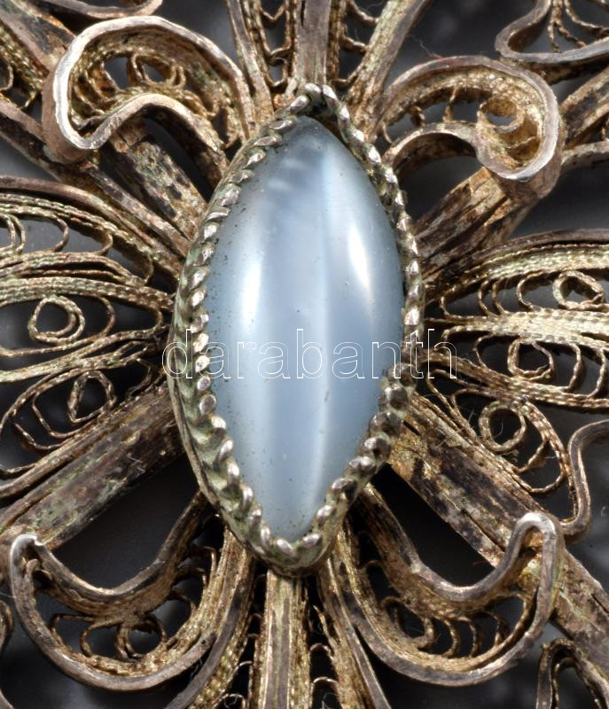 Ezüst(Ag) filigrán medál, jelzés nélkül, 8×4 cm, bruttó: 14 g
