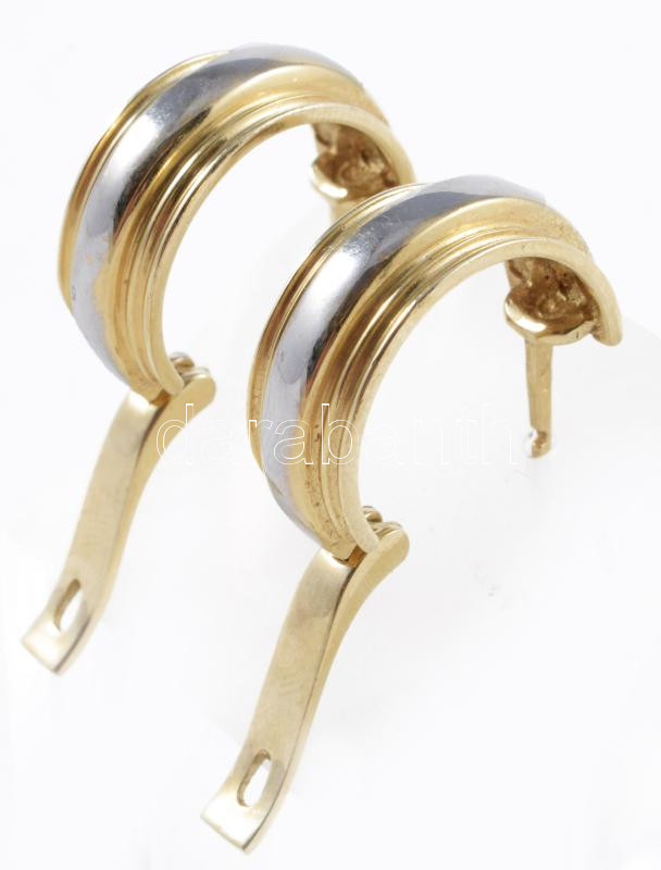 Fehér- és sárga arany (Au) fülbevaló pár, 14k, jelzett, nettó 7,3g