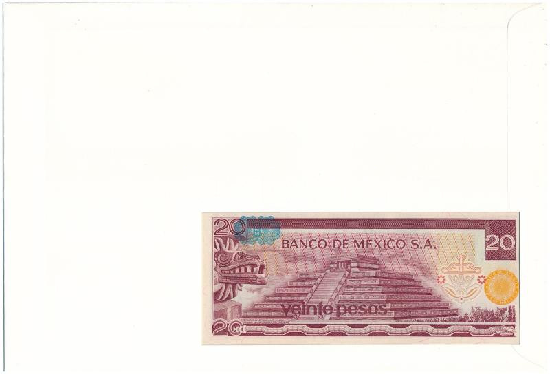 Mexico 1977. 20 Pesos in envelope with stamp and cancellation C:UNC