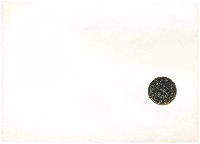 Turks and Caicos Islands 1981. 1/4 Crown in envelope with stamp and cancellation, with German description C:UNC