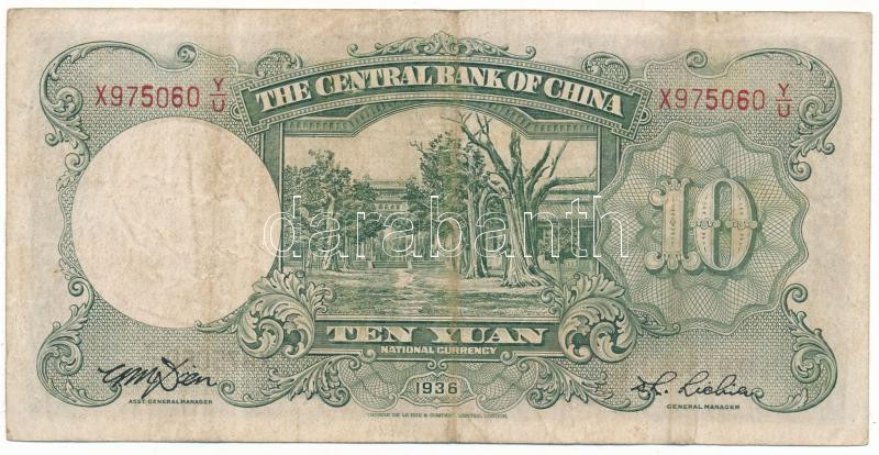 Leírás: Kína 1936. 10Y "Central Bank of China", "X 975060 Y/U" T:F