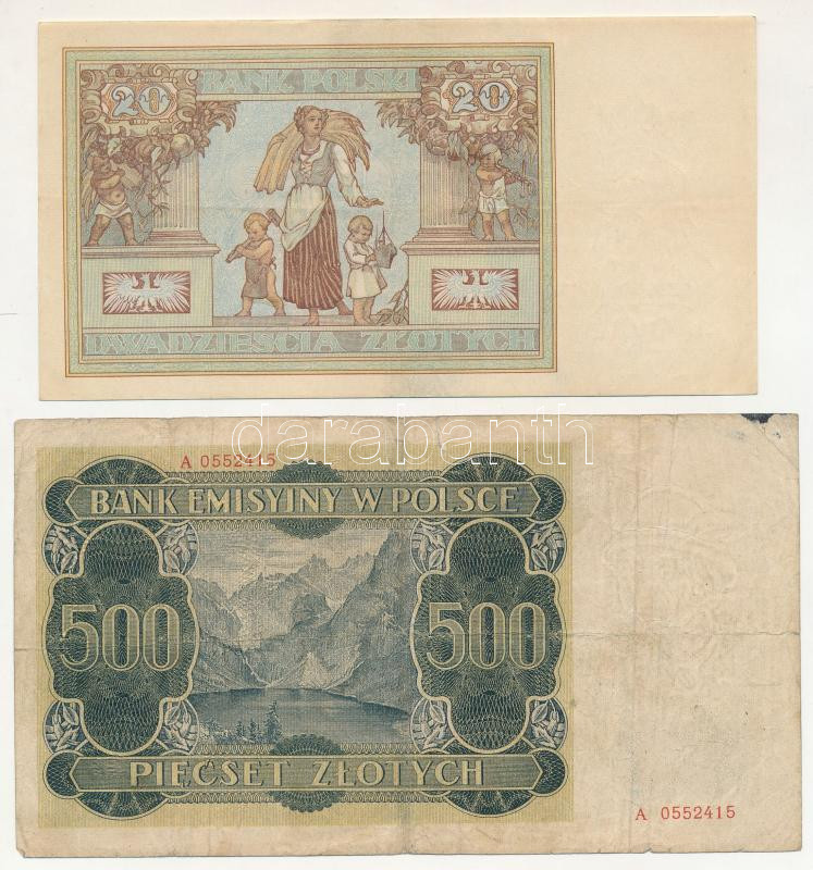 Leírás: Lengyelország 1940. 500Zl + 1931. 20Zl T:F