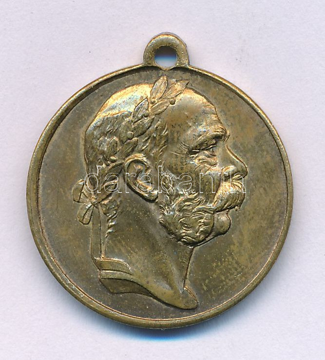 Ausztria 1908. "Ferenc József uralkodásának 60. évfordulójára" kétoldalas sárgaréz emlékérem füllel (23mm) T:AU patina