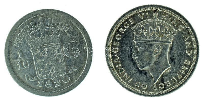 Leírás: Indonézia /Holland Kelet-India 1920. 1/10G Ag + Malajzia 1945. 5c Ag "VI. György" T:AU-VF