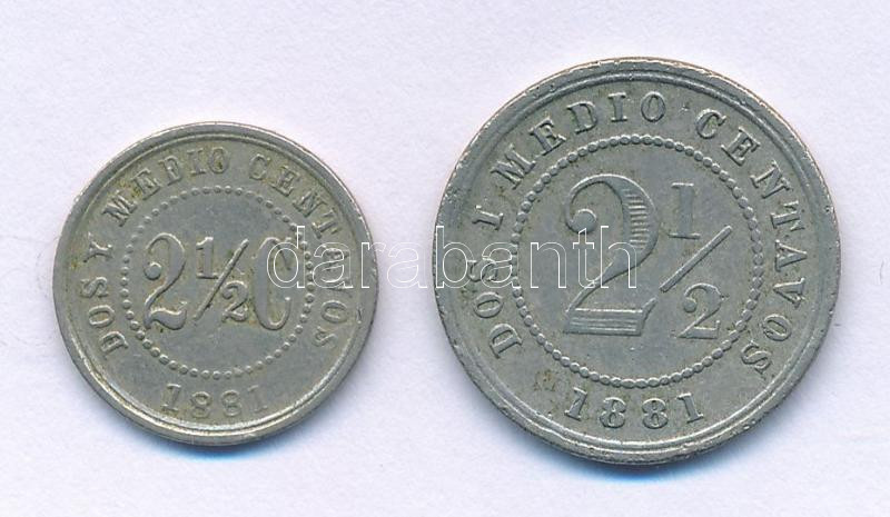 Colombia 1881. 2 1/2 Centavos Cu-Ni + 2 1/2 Centavos Cu-Ni C:XF,VF