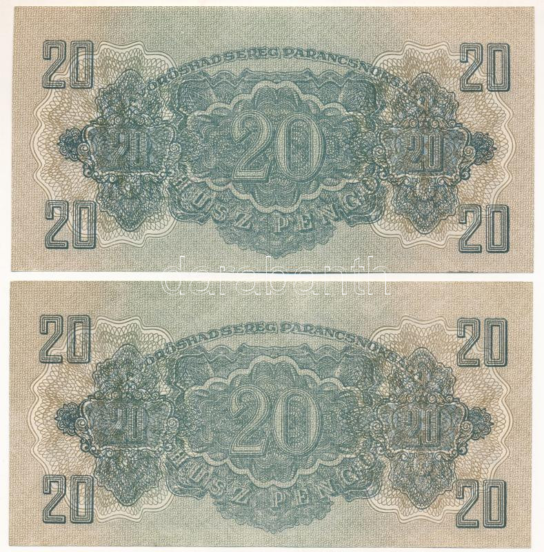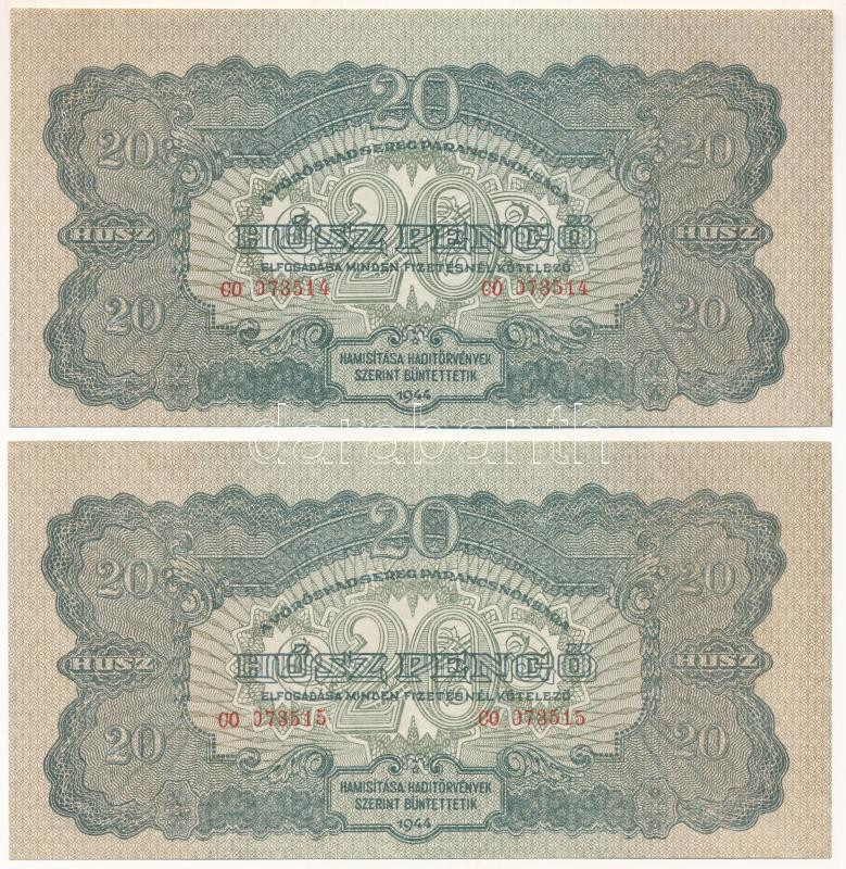 Leírás: 1944. 20P "A Vöröshadsereg Parancsnoksága" (2x) sorszámkövetők "CO 073514 - CO 073515" T:XF
