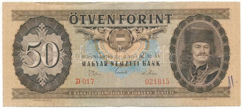 Leírás: 1969. 50Ft "D 017 021815" T:F elején kézírás