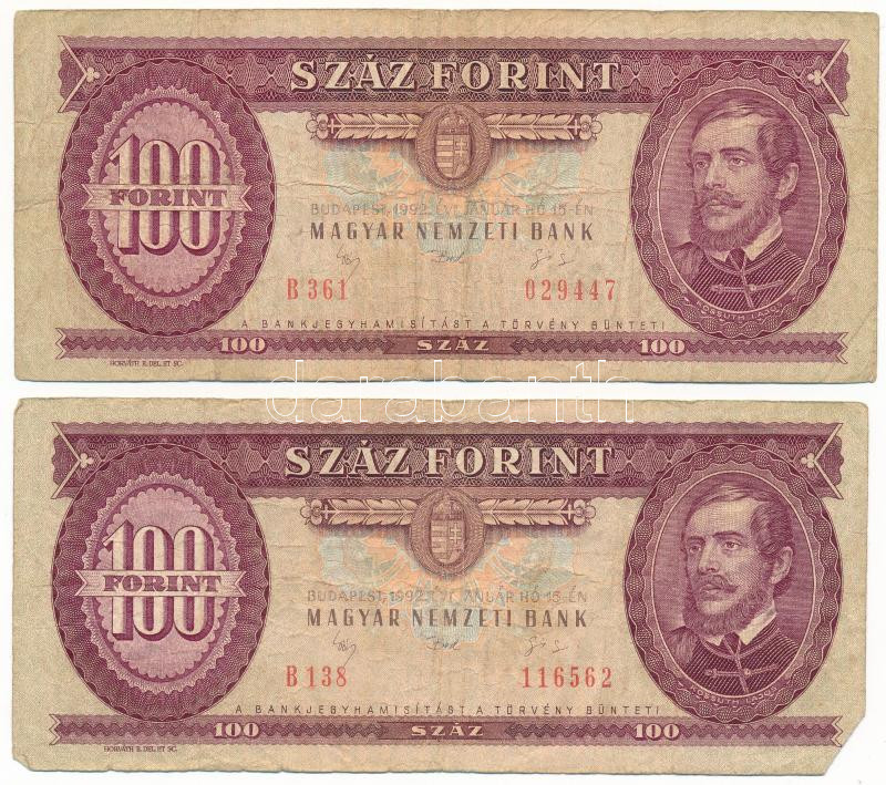 Adamo F37 https://www.darabanth.com/hu/515-Filatelia-kepeslap-numizmatika-mutargy-konyv-papirregiseg-ekszer-aukcio/518.0/Numizmatika/Magyar-bankjegyek~665/1992-100Ft-2x-T-F3Cbr-3E-Adamo-F37~II3444760
