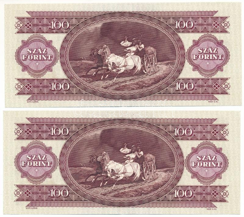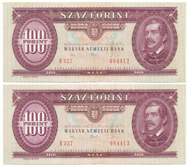 Leírás: 1992. 100Ft (2x) sorszámkövetők "B 327 084412 - B 327 084413" T:F szép papír