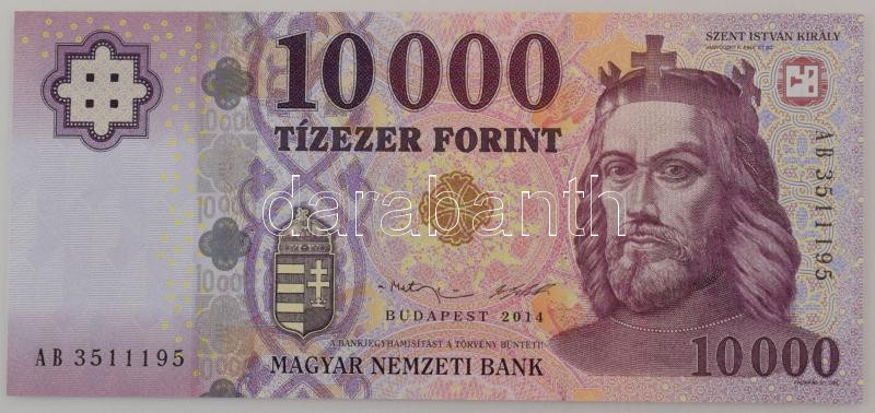 2014. 10.000Ft "AB 3511195" T:UNC,AU https://www.darabanth.com/hu/515-Filatelia-kepeslap-numizmatika-mutargy-konyv-papirregiseg-ekszer-aukcio/518.0/Numizmatika/Magyar-bankjegyek~665/2014-10000Ft-AB-3511195-T-UNC-AU~II3485227