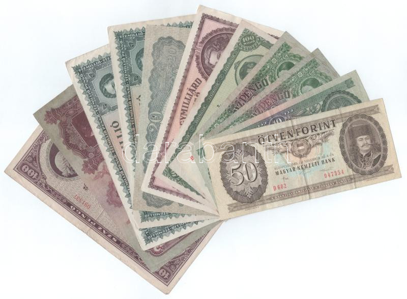 Vegyes 11db-os pengő és forint bankjegy tétel T:F https://www.darabanth.com/hu/515-Filatelia-kepeslap-numizmatika-mutargy-konyv-papirregiseg-ekszer-aukcio/518.0/Numizmatika/Magyar-bankjegyek~665/Vegyes-11db-os-pengo-es-forint-bankjegy-tetel-T-F~II3491480
