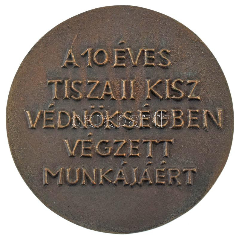 1985 k. "Tisza II / A 10 éves Tisza II KISZ védnökségben végzett munkájáért" bronz emlékérem, eredeti tokban (91mm) T:AU