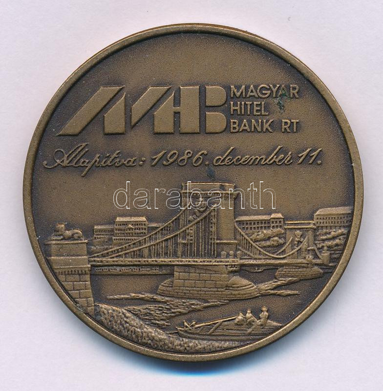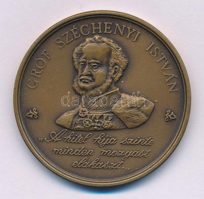1986 k. "Gróf Széchenyi István - 'A hitel híja szinte minden mozgást elakaszt' / MHB (Magyar Hitel Bank Rt. - Alapítva 1986. december 11." bronz emlékérem (42,5mm) T:AU