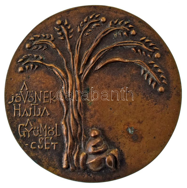 Csíkszentmihályi Róbert (1940-2021) 1970 k. "A jövőnek hajtja a gyümölcsét" bronz emlékérem (81mm) T:AU,XF patina