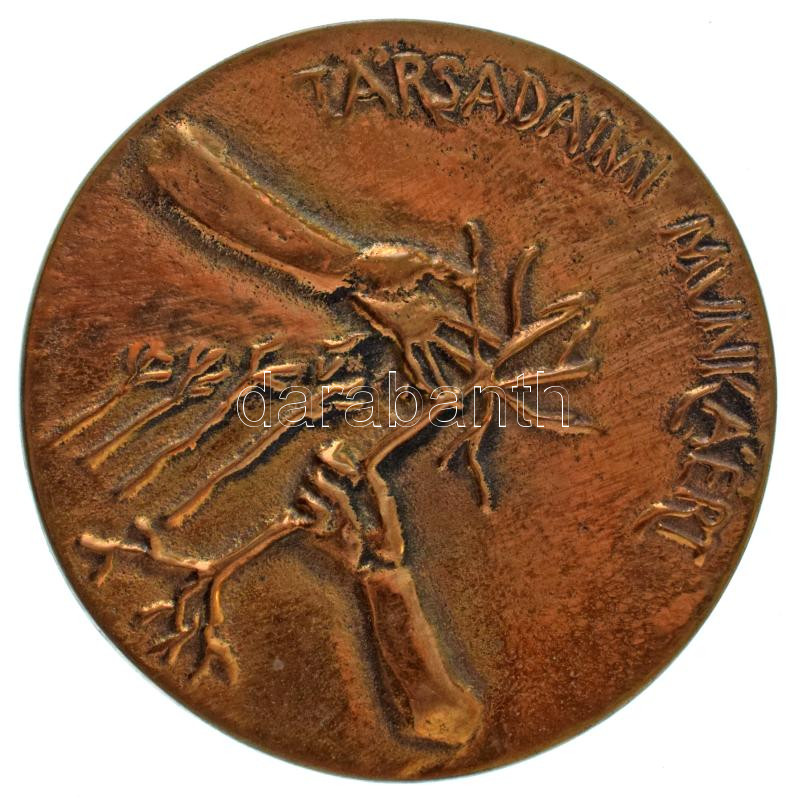 DN "Társadalmi munkáért" egyoldalas, öntött bronz emlékérem (68mm) T:XF